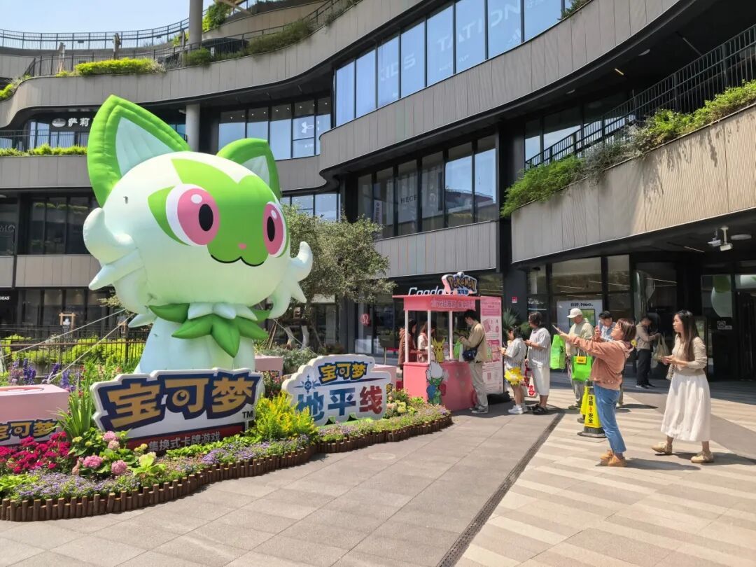 人气十足的宝可梦花径漫游区,围绕巨型绿植搭建出奇幻花境,5米高的发光新叶喵气模矗立其中,不少市民参与集章活动,用影像留下精彩瞬间。同时,百联西郊联动中山公园打造双园花境,以客流与福利互通丰富“15分钟公园城市生活场景”。