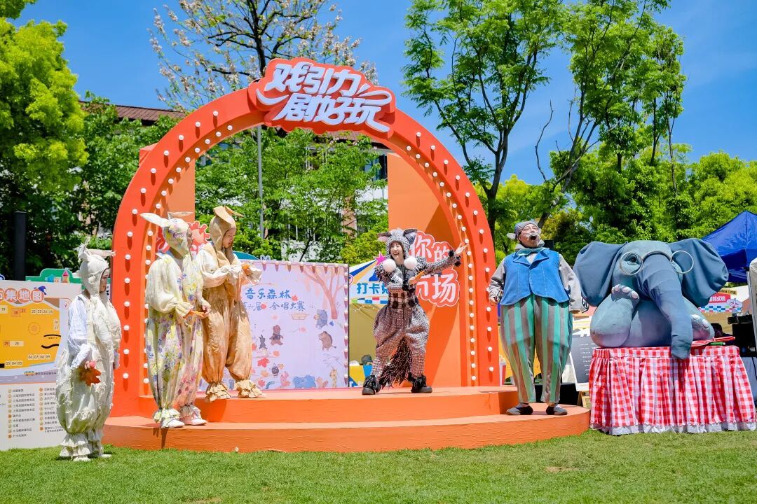 4月26日中午,永源路街区的草坪上,来了一群爱唱歌的兔子。优美的歌声、伙伴间的友谊……把不少正在逛“戏引力·剧好玩”2026静安戏剧市集的市民和孩子吸引过来。