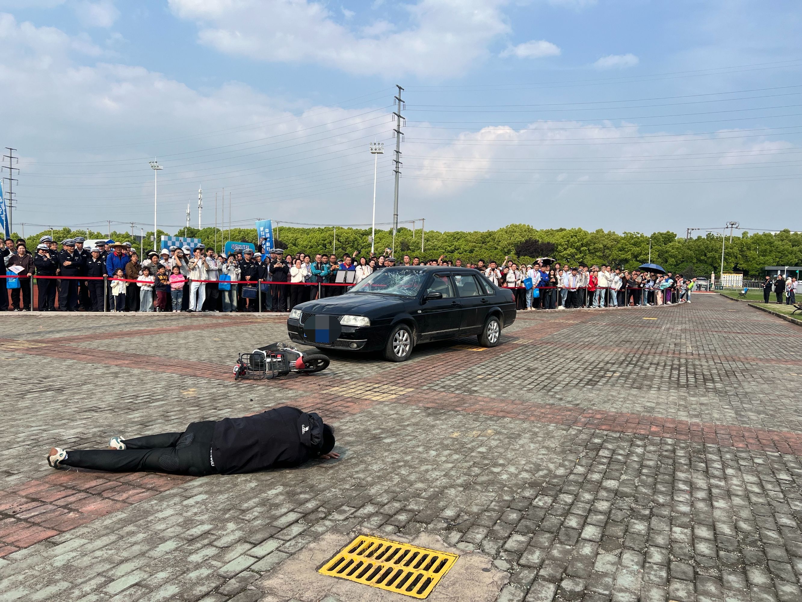 行人从路边横穿马路,左侧来车,慌乱避让下,直接撞上左侧第二辆来车,车辆挡风玻璃碎了,行人受到冲击直接倒地……这是4月24日,松江区车墩镇交通宣整主题活动中特技展示的一幕。本次活动以“宣整护平安 幸福一路行”为主题,聚焦老年人、学生、快递外卖骑手、大型车驾驶员等重点群体,以沉浸式体验、互动式宣教、精准化宣讲、常态化整治相结合的方式,在43处点位展开交通安全靶向宣传。据悉,即日起至6月底,松江公安分局交管支队联合区内多个部门在车墩区域范围内开展相关整治行动。