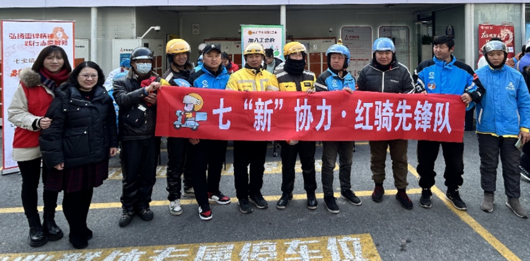 淘宝闪购七宝站点本是一个普通的外卖基层网点。为推动党的组织覆盖、工作覆盖与有效服务、社会治理相结合,提升基层站点党建与社会治理效能,七宝镇结合辖区骑手分布密度、出行便捷度等实际情况,选定此处进行升级改造,并整合属地、行业主管部门及社会工作部力量,组建功能互补的“双站长+党建指导员+党建联络员”团队,通过定点联系、嵌入服务、精准引导将基层网点打造为集服务保障、党建引领、诉求响应于一体的骑士驿站。