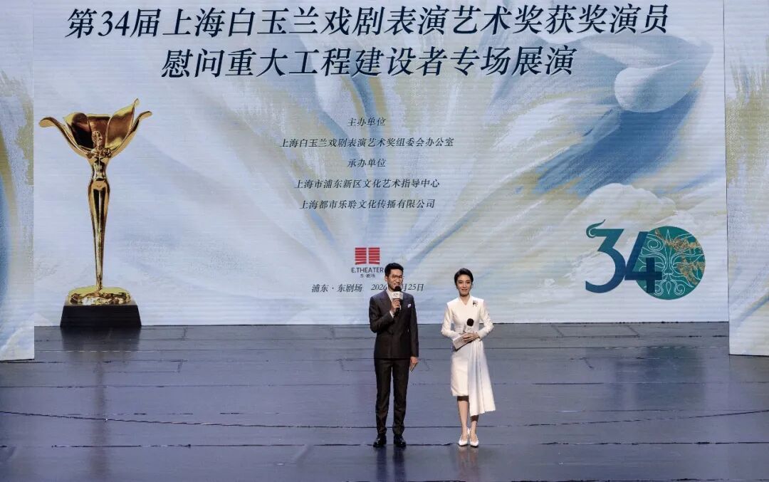 2026年4月25日,由上海白玉兰戏剧表演艺术奖组委会办公室、中共上海市浦东新区委宣传部主办,上海市浦东新区文化艺术指导中心、上海都市乐聆文化传播有限公司承办的庆祝“五一”国际劳动节——“时代有戏·玉兰绽放”第34届上海白玉兰戏剧表演艺术奖获奖演员慰问重大工程建设者专场展演在上海市浦东新区文化艺术指导中心东·剧场温情上演,在劳动节前夕为来自东方枢纽等重大工程项目的建设者送去慰问,以优秀文艺作品致敬劳动、礼赞奋斗。