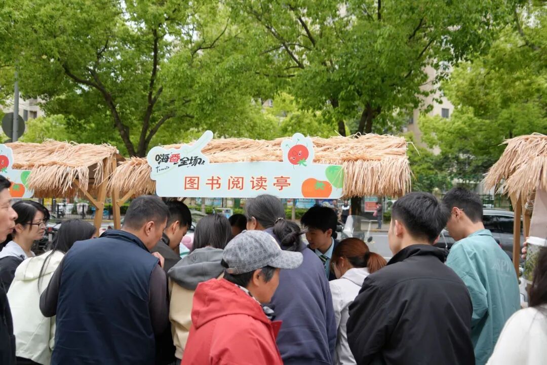图书阅读亭内,江桥邮局带来的“绿色阅读”流动书摊前,不少家长带着孩子选购书籍和特色文创;文化体验区里,咖啡文化体验摊位飘出阵阵醇香,年轻白领们边品咖啡边交流;番茄主题田园市集更是人气爆棚,来自本地生态园的番茄产品引得居民争相品尝购买。