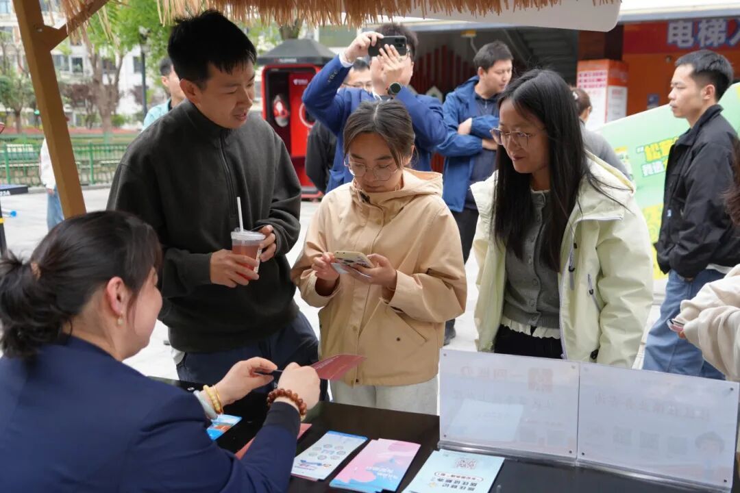 下午两点,活动现场已是人流如织。理论学习、政策咨询、文化体验、文艺演出……一个个“摊位”前围满了前来“打卡”的市民,不少周边居民更是提前半小时就来到现场“占位”。据统计,活动共吸引了逾二百名青年党员、白领及社区居民自发参与。