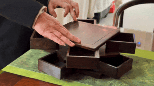 如今,王海铭不仅坚持用传统技艺修复制作家具,还致力于将技艺融入日常生活。店内的传统工艺品由他亲手制作,文创产品则多由他和年轻团队利用红木家具的余料设计制作。在“变废为宝”的过程中,依然遵循着这项传统技艺的精髓。