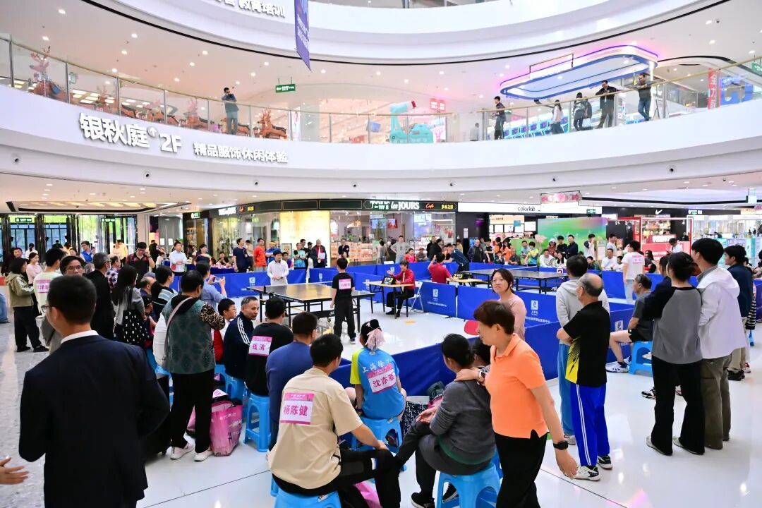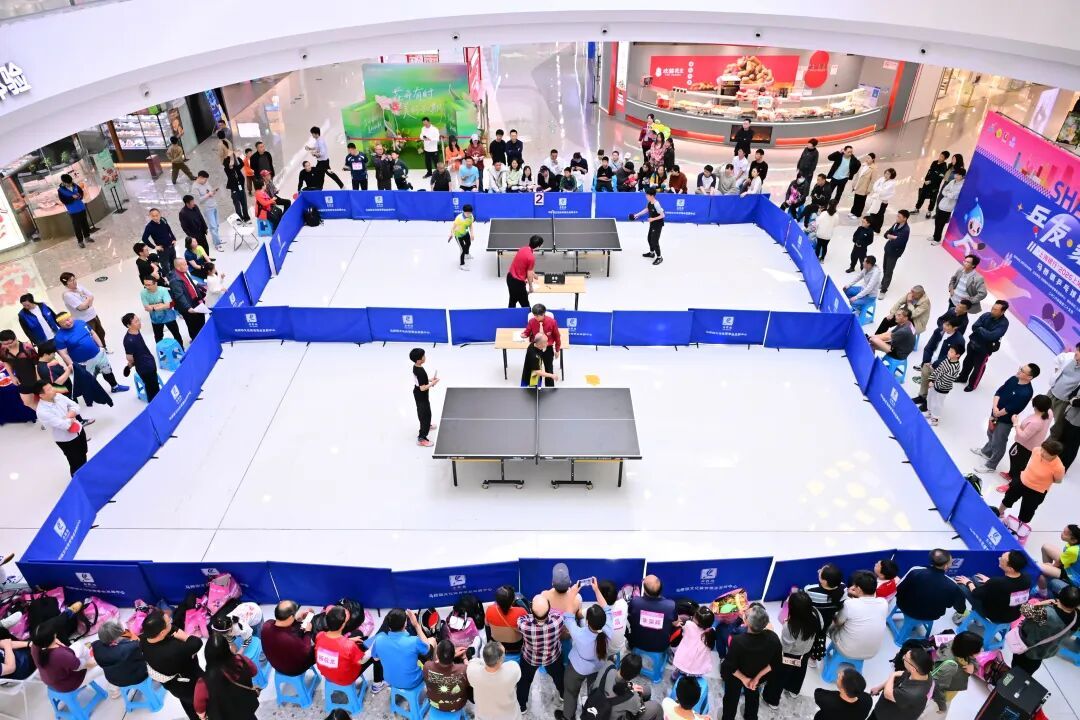 在这场比赛中,上至70岁老人,下至10岁小朋友,共64位不同年龄段的乒乓爱好者同台竞技,以球会友,打造了一场集体育竞技、文化氛围、商圈活力于一体的全民盛宴。