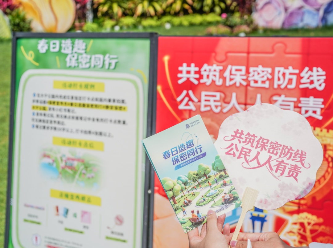 线下活动中,公园入口及花海打卡区周边设置了特色宣传摊点,工作人员现场发放定制版保密宣传折页,折页内容精简实用,涵盖保密基本常识、保密义务及线上打卡指引,让市民在游览间隙就能快速掌握保密知识。