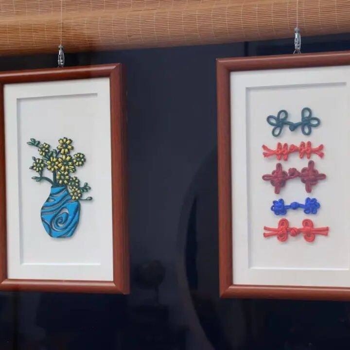 如今,在构月霞的巧思下,盘扣不再仅仅是服装的配饰,而是化为集实用性、观赏性于一体的文创单品与艺术装饰。