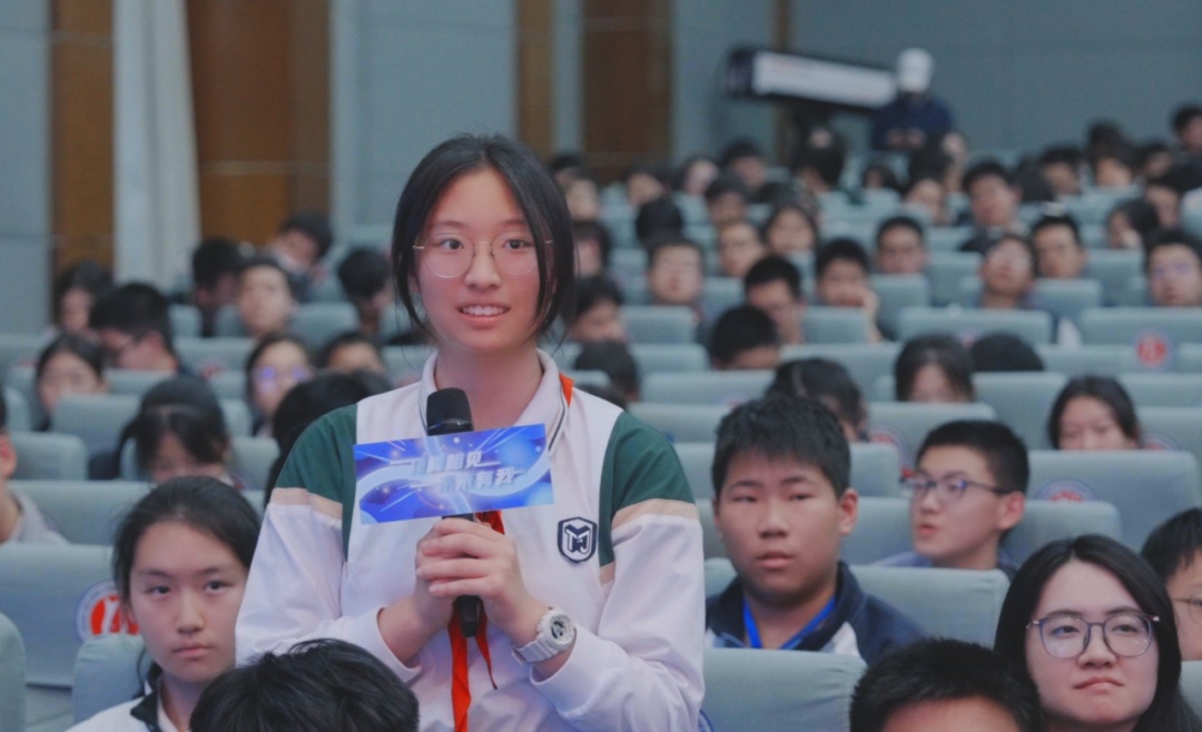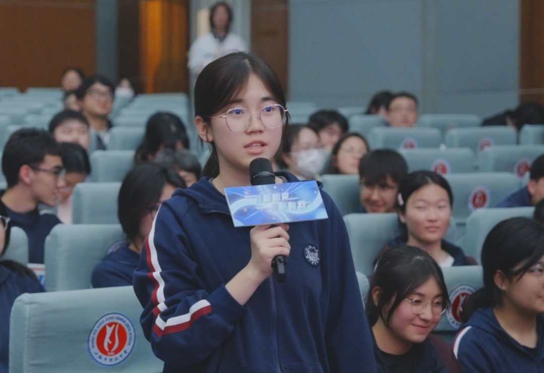 互动现场,来自同济大学第一附属中学、控江中学、杨浦双语学校及同济大学附属新江湾城实验学校的学生,以及一线科技教师踊跃提问——