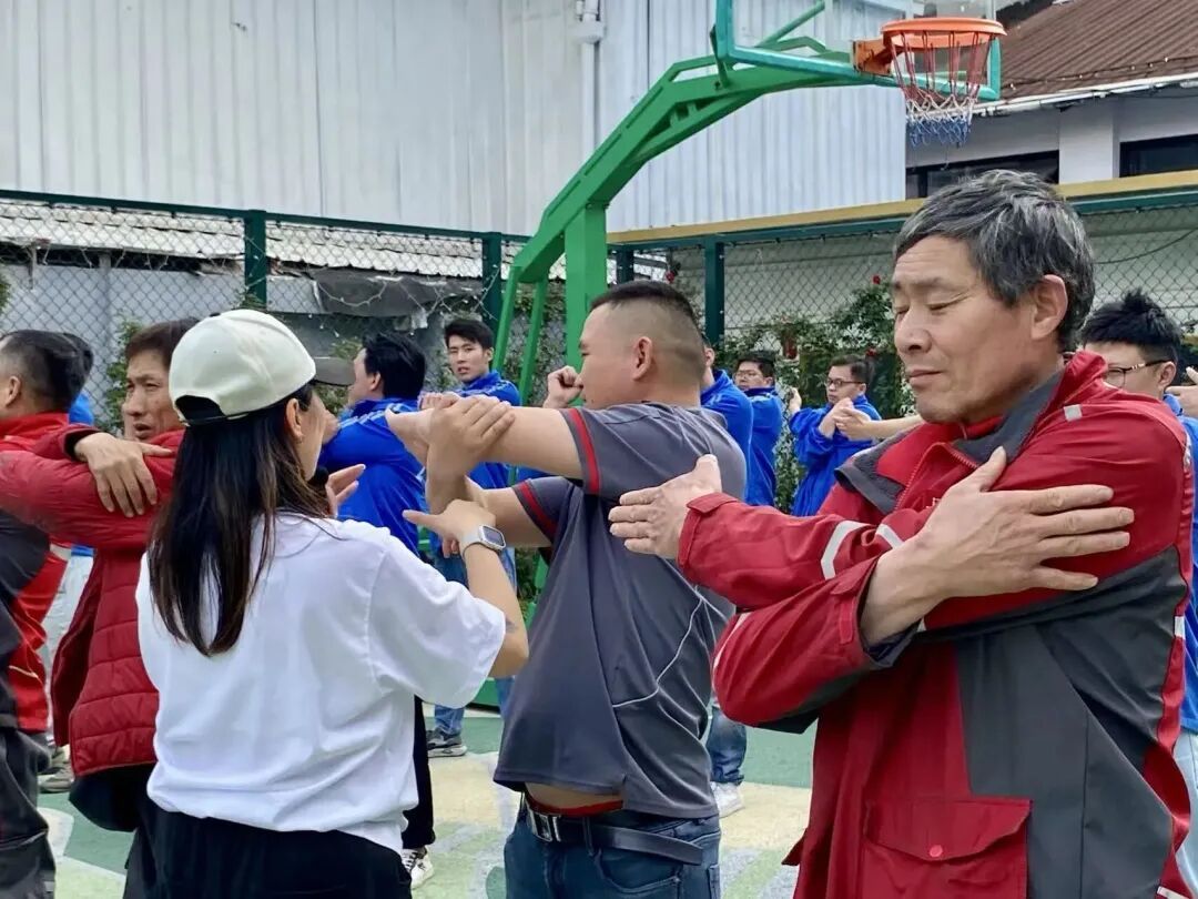 活动现场,教练将肩颈舒缓、腰背放松、手腕养护、膝腿舒活、全身舒展五组动作拆解成“探头松颈”“转体松腰”“屈膝抬腿”等简单易学的动作。