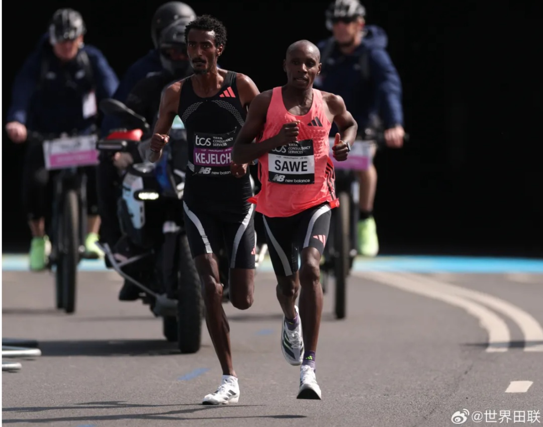 北京时间4月26日,2026伦敦马拉松鸣枪起跑。肯尼亚选手塞巴斯蒂安·萨维以1小时59分30秒的成绩打破男子马拉松世界纪录,成为全程马拉松首位跑进2小时大关的人类运动员
