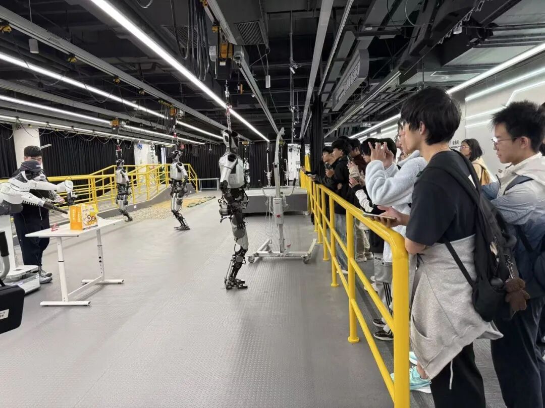 “老师,人机协作真能替代人工完成精密操作吗?”“机器人的步态控制怎么适应不同路面?”带着教室内没解开的疑问,智能机器人与先进制造创新学院的王岚鑫和同学们,走进了人形机器人(上海)有限公司的生产车间。一台银色人形机器人挥手致意,精准完成抓取、堆叠动作,更在工作人员设置的障碍物前灵活转身。“它的关节转动和我们的手臂一模一样,在扭转角度上甚至超过了人类极限。”王岚鑫忍不住掏出手机记录,并追问工程师:“刚才那个动态抓取,是不是用到了我们学的阻抗控制算法?”除了一个个“各显神通”的机器人,同学们还近距离接触了复旦“光华一号”原型机,对具身智能与控制算法的实际应用有了更具象的理解。