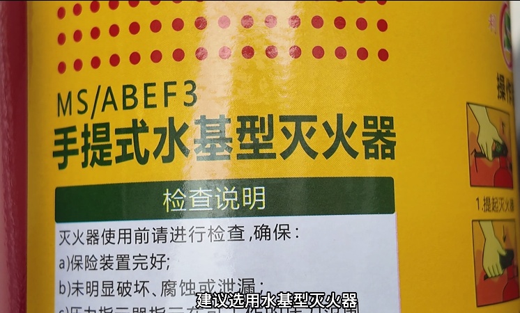 01 不得将电动自行车推入电梯,更不能将蓄电池带入家中充电。 02 楼道、通道、门厅严禁停放电动自行车,要停放在专用区域。 03 不得私拉乱接“飞线充电”,认准合规充电桩。 04 不得混用非原厂充电器,坚持原厂原配,避免电路故障。 05 不得私自改装电动自行车的蓄电池及其电路,要寻找专业的维修点进行维修。 06 不得使用三无产品,电动自行车辆及其蓄电池要选正规产品。 最后再次提醒 电动自行车发生爆燃 建议选用水基型灭火器 这几组安全要点牢记心间 电动自行车安全关乎你我他 守护每一个安全细节 就是守住平安幸福