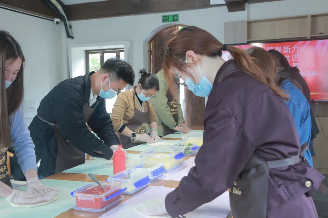 座谈结束后,大家前往念朴麦开展披萨DIY体验活动。专业烘焙师现场讲解披萨制作原理、食材搭配与烘烤注意事项,指导大家完成饼底塑形、酱料涂抹、馅料铺放等步骤。大家发挥创意,制作出多款造型别致、风味独特的手工披萨,等待烘烤的过程中,成员们参观打卡、交流互动,现场氛围轻松热烈。品尝着亲手制作的披萨,大家在欢声笑语中定格美好瞬间,进一步增进了情谊、凝聚了力量。