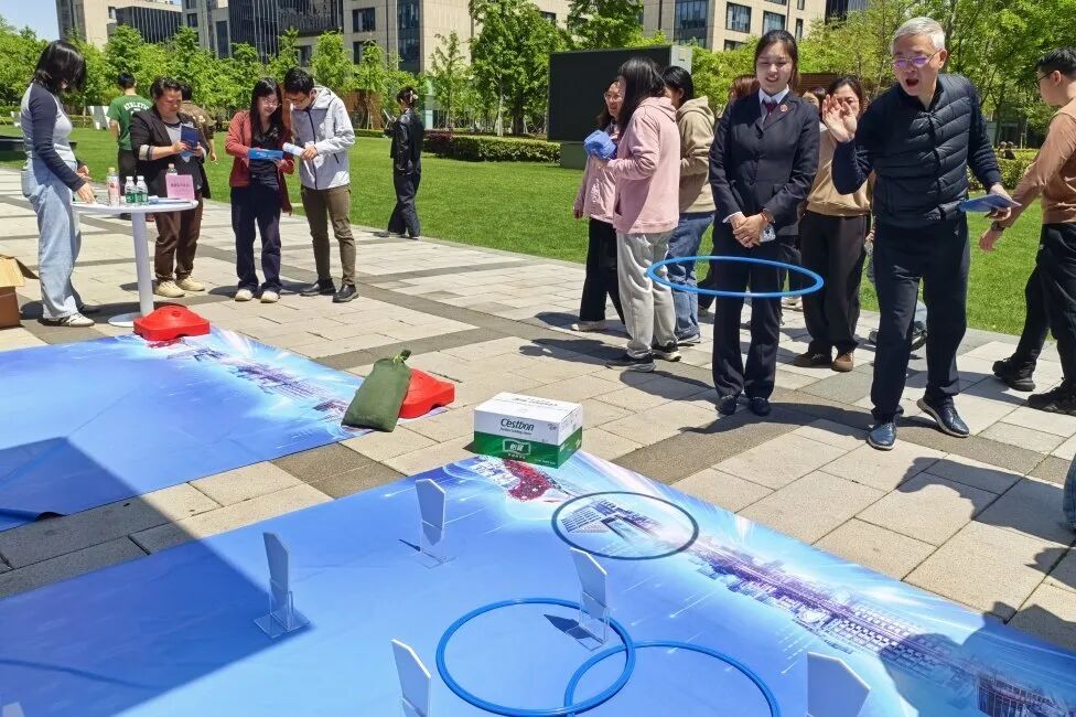 另一边,区司法局制作的“杨浦区法治惠企服务包”受到园区白领欢迎。在详细了解“服务包”内容后,大家拿起印有法治标语的沙包,瞄准目标稳稳投出。“中啦!”现场不时传来欢呼声,参与者沉浸式感受法治氛围。