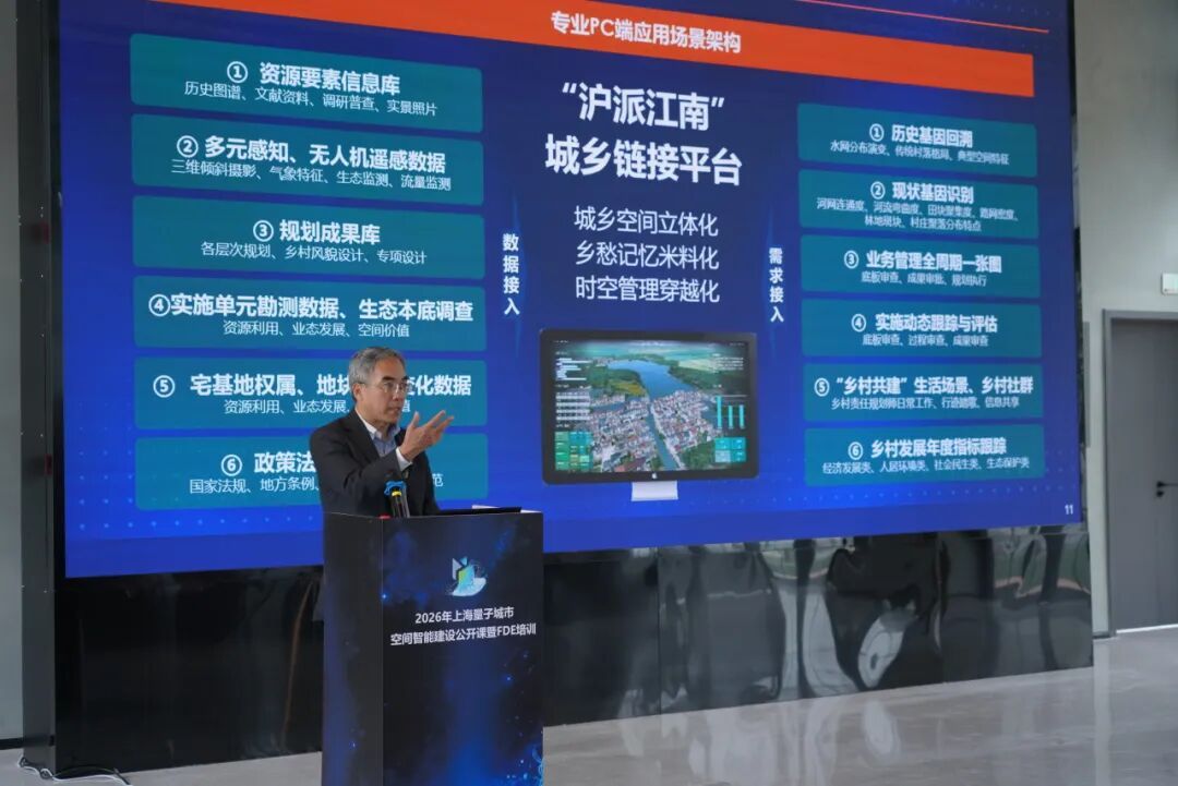 公开课共有“全球空间智能前沿趋势”“量子城市空间智能建设”“空间智能场景应用”三个单元17门课程,从人工智能发展趋势、多模态大模型到AI原生重构行业,从“云宇星空”基座大模型、空间米料、智能感知网络,到“悟空”评估模型、时空智能底板,再到“星空云厅”“详规小工单”“建管小工单”“登记小工单”、“15分钟社区生活圈”、“沪派江南”水乡焕新场景,把上海两年多来的量子城市空间智能建设探索成果,从蓝图到技术底座再到实战场景,逐一展现在学员面前。