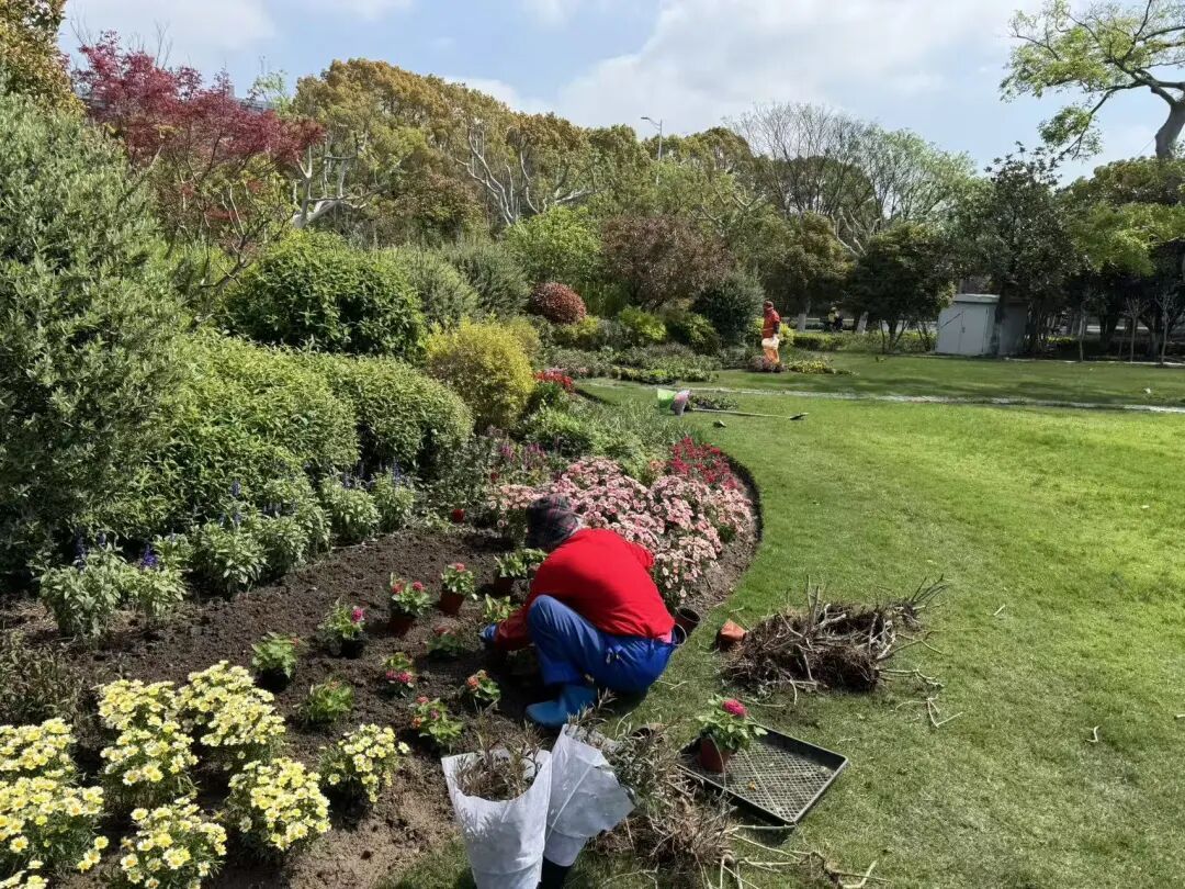 栽植过程中,养护人员根据花卉品种、色彩、植株大小科学搭配,有序开展松土、栽植、培土、灌溉等一系列工作,确保花卉栽种规范、长势良好。换花后,新城公园的花卉与周边绿植相映成趣、生机盎然;C湖公园的花卉层次分明、雅致美观,为公园增添了新的生机与活力,显著提升了景观整体效果。