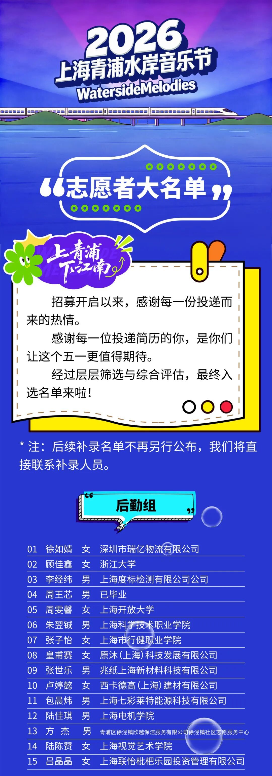 志愿者名单公布丨2026上海青浦水岸音乐节