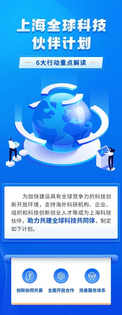 上海一网通办总门户介绍,为加快建设具有全球竞争力的科技创新开放环境,支持海外科研机构、企业、组织和科技创新创业人才等成为上海科技伙伴,助力共建全球科技共同体,近日,市政府办公厅印发《上海全球科技伙伴计划》(以下简称《伙伴计划》)。《伙伴计划》包括国际联合研究、人才交流访问、国际科技组织引育、开放科学、产业创新国际化、创新生态优化等六大行动共18条举措。