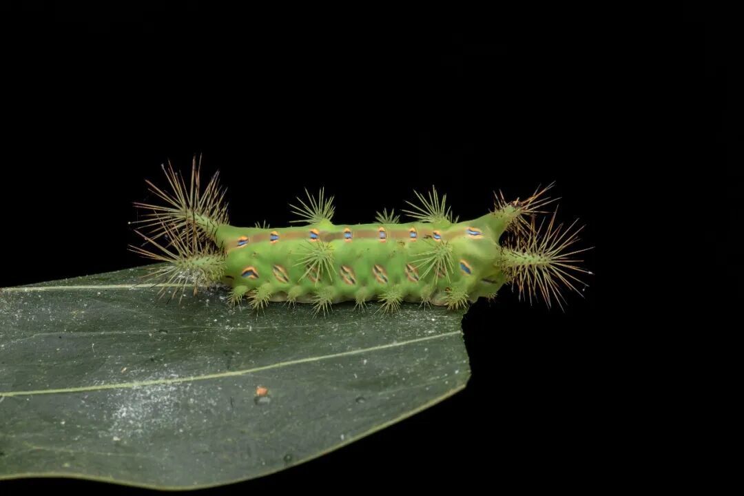刺毛虫俗称“洋辣子”,是自然界的“伪装大师”,身披色彩斑斓的毒毛,常静伏在树叶上,不易被发现,每年6-9月进入活跃期,在公园、庭院的树木上尤为常见。它的毒毛是空心“毒针”,内部储存强酸性毒液,一旦接触人体皮肤,毒毛会刺入皮肤释放毒液,瞬间引发剧烈灼痛和瘙痒,伤口周围迅速红肿、起丘疹或水疱,抓挠会导致毒毛深入,加重症状,过敏体质者可能出现更严重反应。