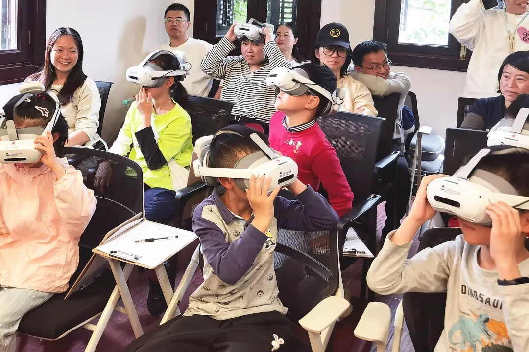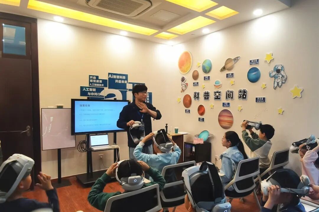 活动中,孩子们跟着讲师的细心讲解,学习星座知识、寻找夏季大三角、学唱认星歌,完成从地面到星空的认知拓展。大家还戴上XR设备,身临其境地感受夏季星河的绚烂与震撼,打开更广阔的知识视野。