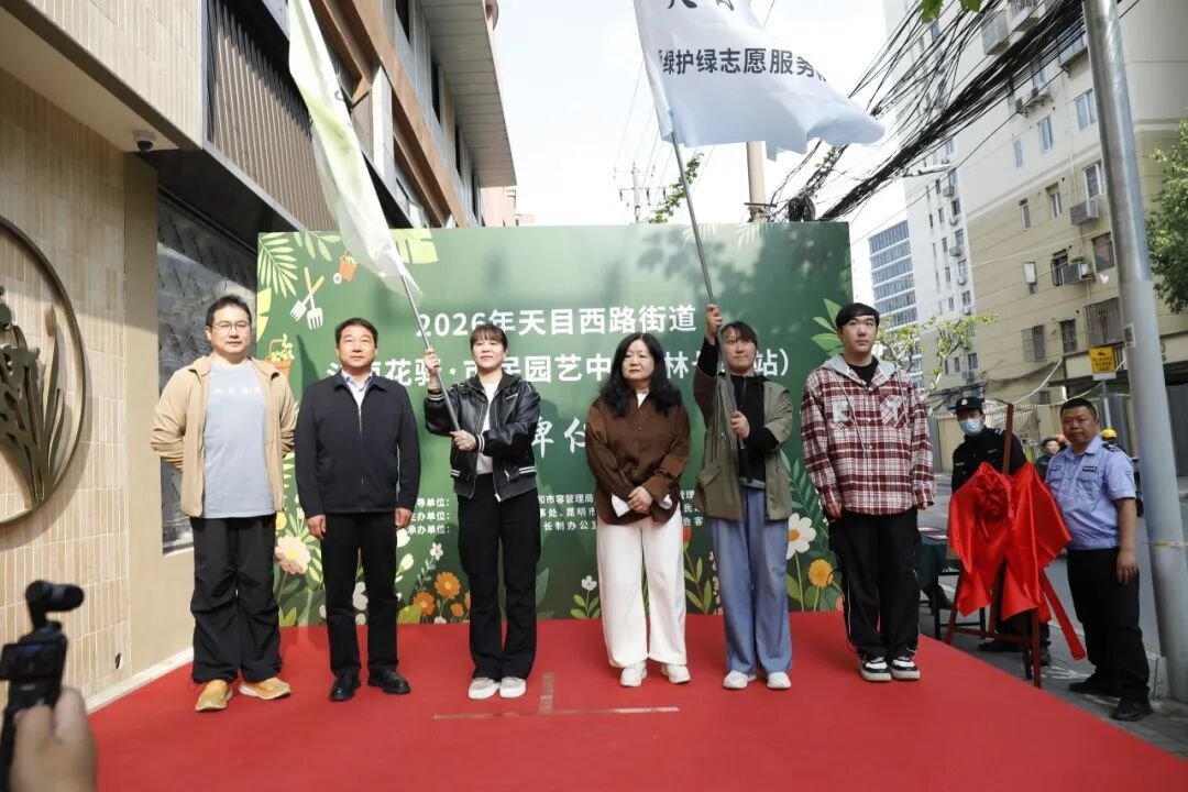 昆明市驻沪办、静安区绿化管理中心共同为居民区林长代表、护绿志愿者代表和企业代表授旗。