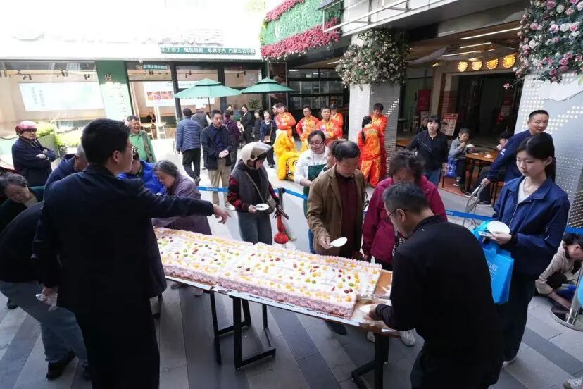 开业当天,繁花市集为广大居民准备了精彩纷呈的开业活动与实实在在的惠民福利,现场热闹非凡、人气爆棚。气势十足的舞狮表演热闹开场,传递开业喜悦;趣味十足的庖丁解猪展示,展现专业食材处理技艺;浪漫樱花主题场景氛围感拉满,适合居民拍照打卡;巨型开业蛋糕免费分享,让居民共尝甜蜜、同庆开业;更有全民抽奖活动惊喜不断,各类精美好礼送不停。同时,市集内各大摊位同步推出开业专属特惠活动,低价好物、超值福利轮番上线,让居民逛得开心、买得实惠。