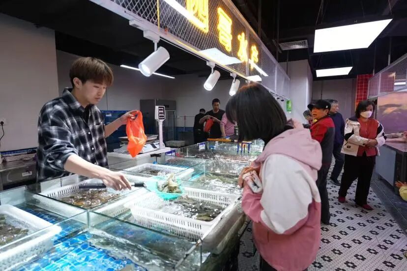 市集专属打造玉兰区(烟火弄堂)生鲜专区,从源头优化食材供给,全面引入有机农场直供新鲜蔬菜,省去中间环节,让居民能买到物美价廉、绿色健康的时令鲜蔬;严选各地特色地标食材,把各地优质农产品搬到居民家门口;搭配精品肉铺、传统豆制品摊位、特色腌腊制品专区,全方位满足家庭日常烹饪需求。特别设立的活鲜水产区,更是贴心推出现捞现杀、即时烹饪专属服务,从鲜活水产挑选到处理加工,再到即刻享用,真正实现“从菜场到餐桌”的零距离,让居民省时、省心、省力。