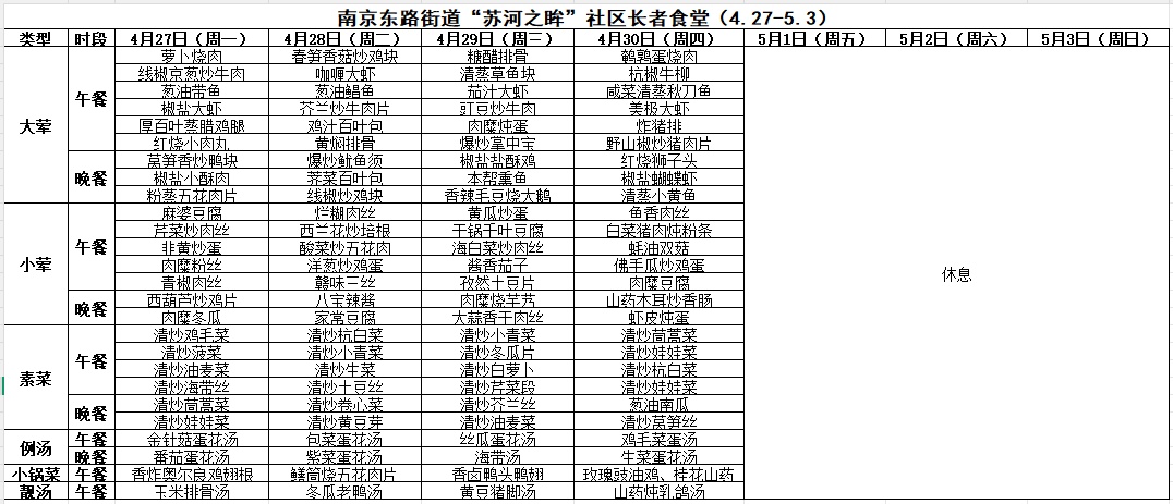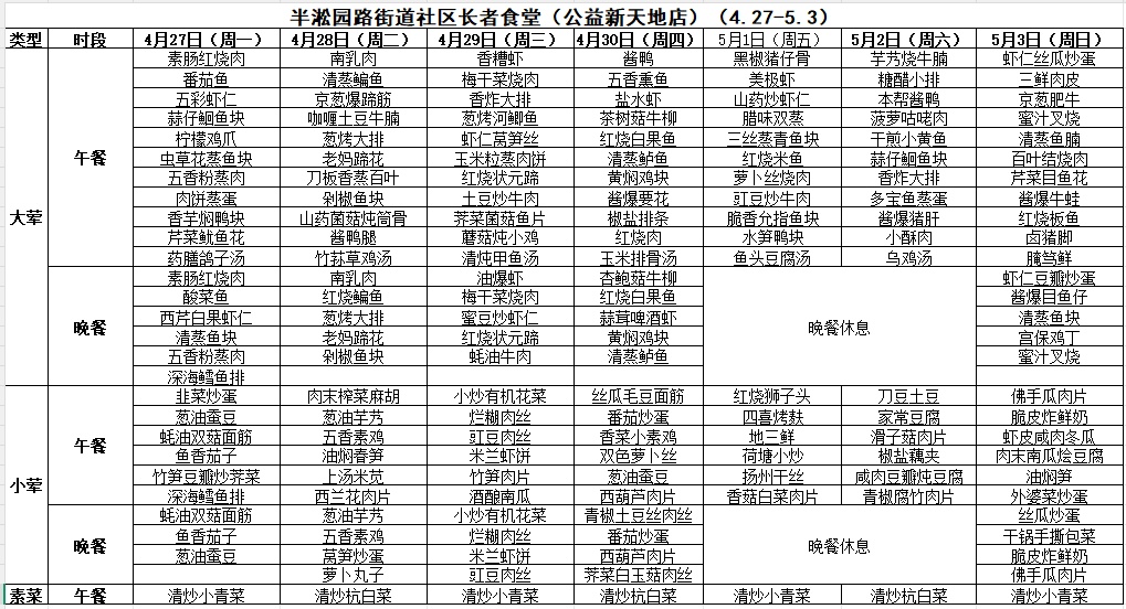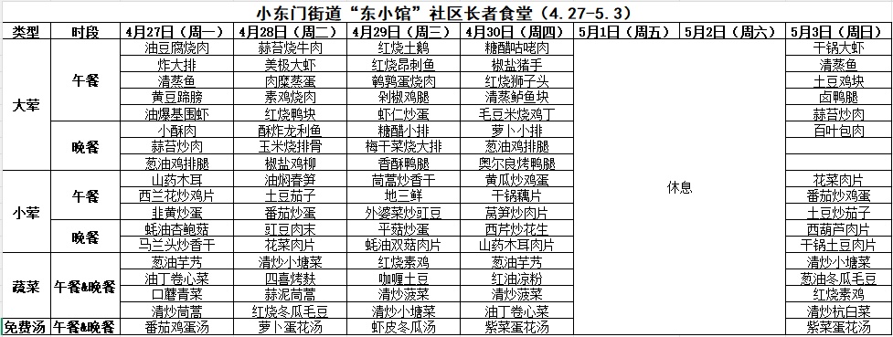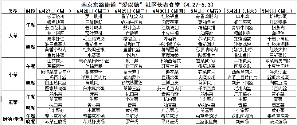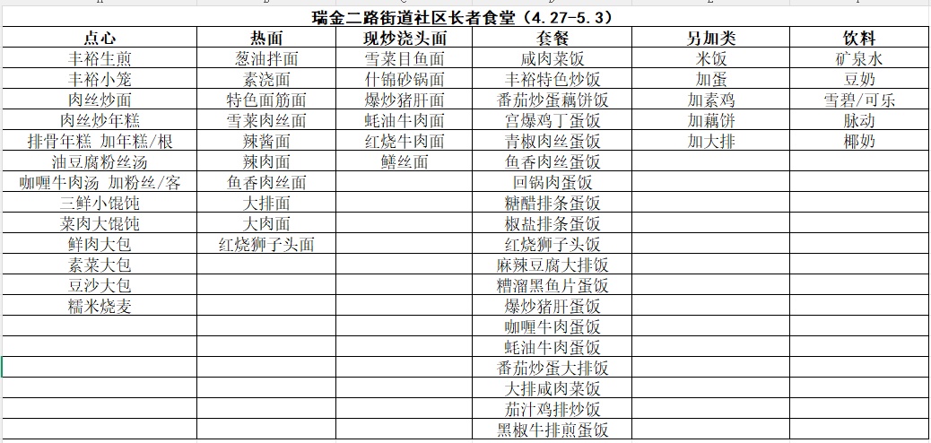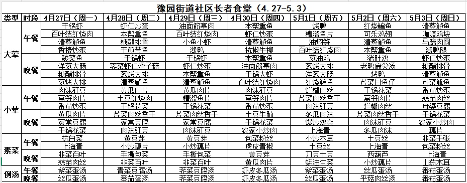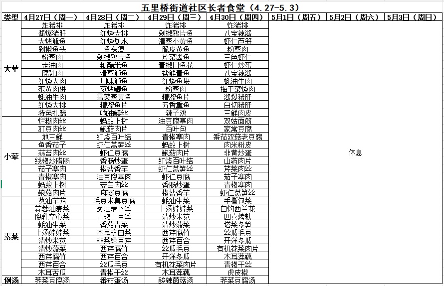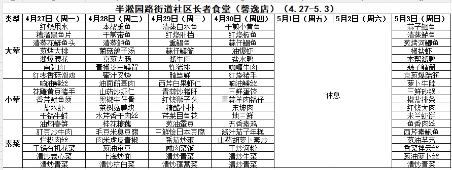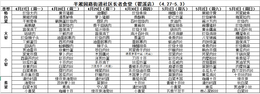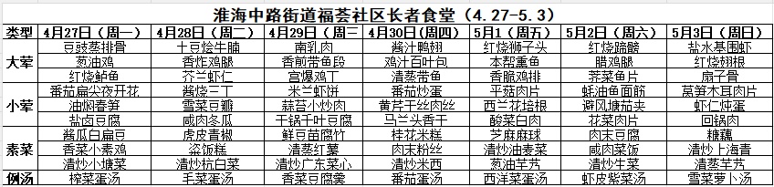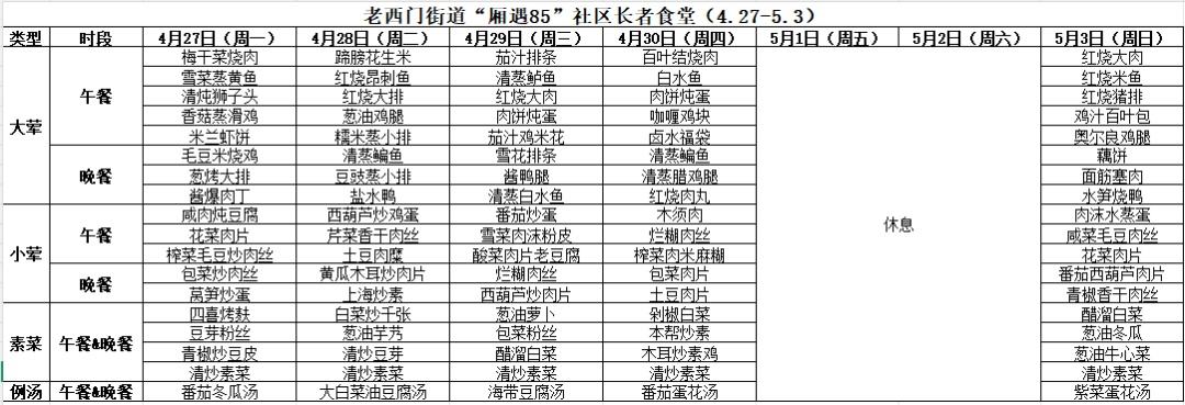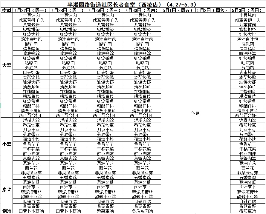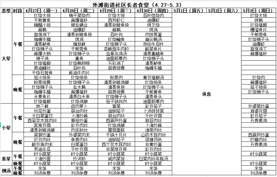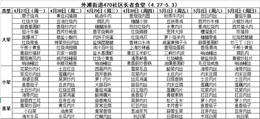 黄浦区社区长者食堂一周菜单(4.27—5.3)