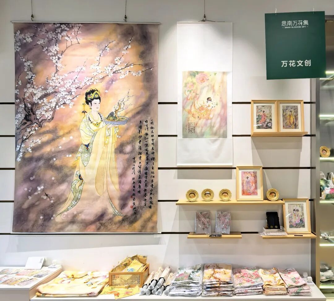 “我是特意来打卡十二花神系列的,之前在网上刷到就很心动。”李女士笑着说,她手里的明信片,正是万花文创携手艺术家何娴倩历时两年打造的作品——以故宫珍藏「康熙十二花神杯」为灵感,融合永乐宫壁画线条与八十七神仙卷人物形制,注入“光影”艺术语言,让古老的花神文化有了当代表达。