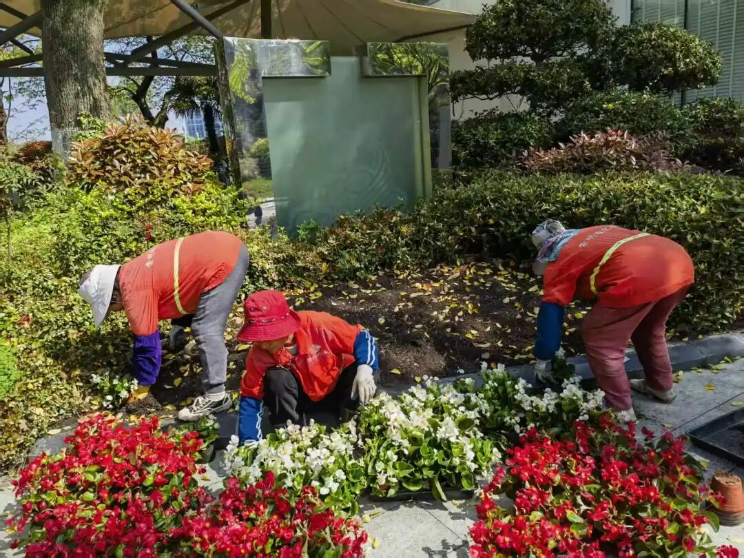 栽植过程中,养护人员根据花卉品种、色彩、植株大小科学搭配,有序开展松土、栽植、培土、灌溉等一系列工作,确保花卉栽种规范、长势良好。换花后,新城公园的花卉与周边绿植相映成趣、生机盎然;C湖公园的花卉层次分明、雅致美观,为公园增添了新的生机与活力,显著提升了景观整体效果。