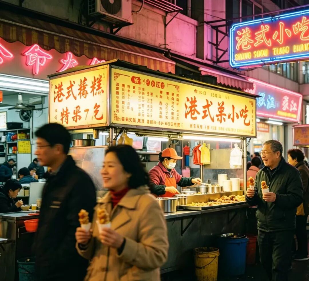 90年代的松江市井愈发鲜活,港式小吃走进街头巷尾,一家人逛街觅食、休闲漫步,是最常见的假日打开方式,烟火气与幸福感拉满。