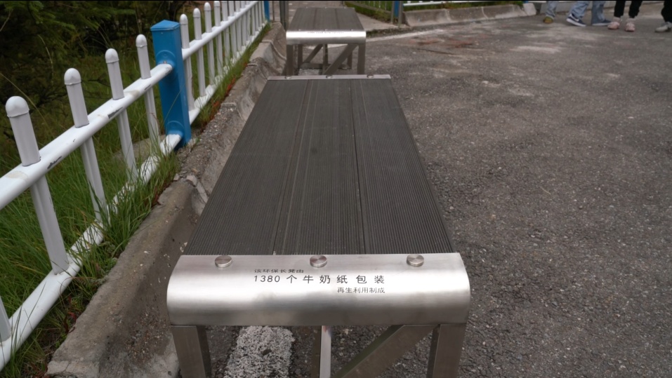 随着参与回收行动的居民越来越多,他们对“回收后的牛奶盒能做什么”也更感兴趣。花博园“网红椅”成为这个问题的直观答案:作为全国最大的牛奶盒再生环保椅,两排长椅各长78米,总共使用502.7万个回收奶盒,其中超过一半奶盒来自回收行动。