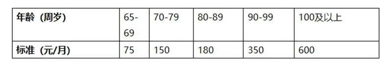 (2)70-79岁,每人每月150元;