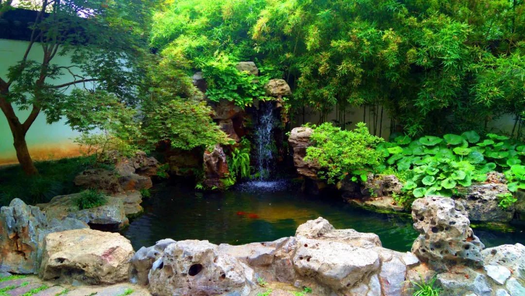 园景以一泓池水为中心,四周古木葱茏,步移景异,满园似画,素有“春访牡丹夏观荷、秋来赏菊冬瞻梅”之趣。