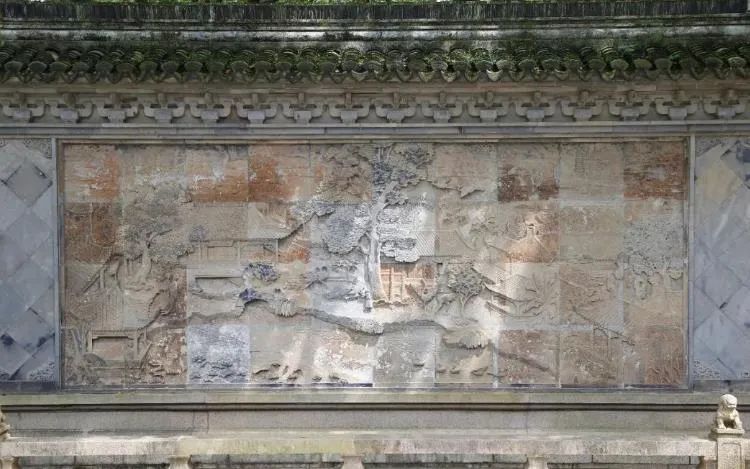 照壁又称影壁,是传统建筑重要的组成部分,起到欲扬先抑的作用。雕刻精美的照壁具有建筑学和人文学的重要意义,有很高的艺术与审美价值。醉白池照壁建于1987年秋,反映的是清代醉白池及松江古代风物。它以浮雕的精致刀法,刻画了醉白池的主景、近景、远景和背景。整座照壁,动静交织,层次分明,高度概括了松江地方风物,极富艺术特色。