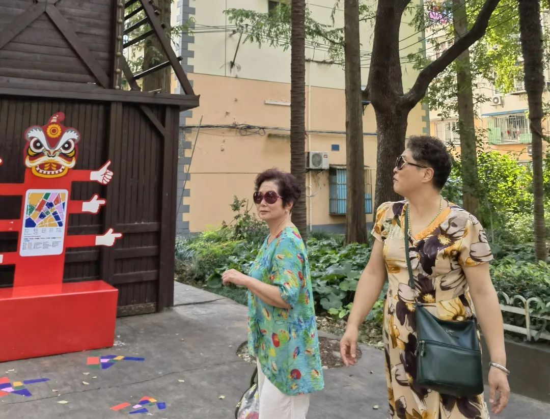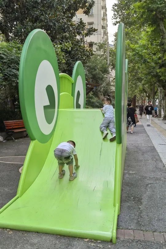 来到苏家屯路,短短百米的林荫道上散落着十几个创意雕塑和城市家具,座椅、钟楼、滑梯是社区老老少少共同的“游乐场”。