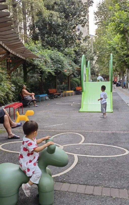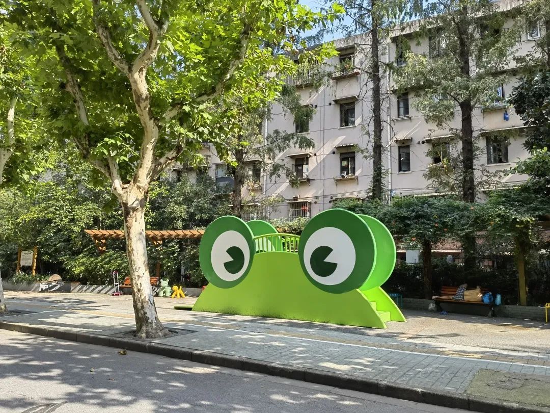 一个老小区门前的空地上,“蹦”出两只小动物。青蛙王子露出超大的眼睛环顾四周,熊猫宝宝也从另一侧爬出地面,四处张望……它们好奇地寻找社区的小朋友,邀大家一起来玩耍。傍晚时分,全新的“动物游乐园”满是孩子们玩乐的身影。