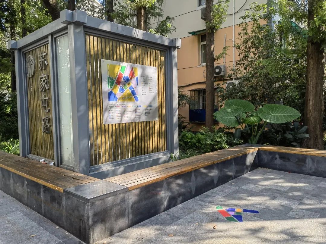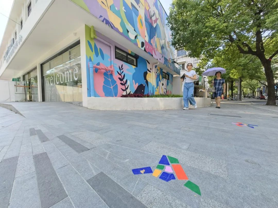 一夜之间,四平社区的地面上,出现了不少色彩“密码”。原来,设计师在“社区地图”上涂了不同的色块,串联起沿线的艺术装置和公共空间。市民在路上偶遇这些色彩“密码”,沿着它的指引,就能找到此次上海城市空间艺术季的展品啦!