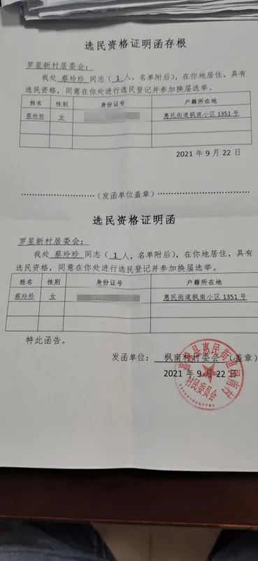 罗星居民区在选民登记中发现,居民蔡女士户籍所在地为浙江省嘉兴市嘉善县,但因其丈夫是朱泾本地人,自己也表示愿意在居住地罗星居民区参加选举,居委会工作人员便及时将情况上报,镇选举办在尊重其本人意愿的基础上,建议蔡女士回户籍地开具“选民资格证明”。在积极配合完成手续之后,蔡女士顺利地获得了在所在地罗星居民区参与选举的合法权利。