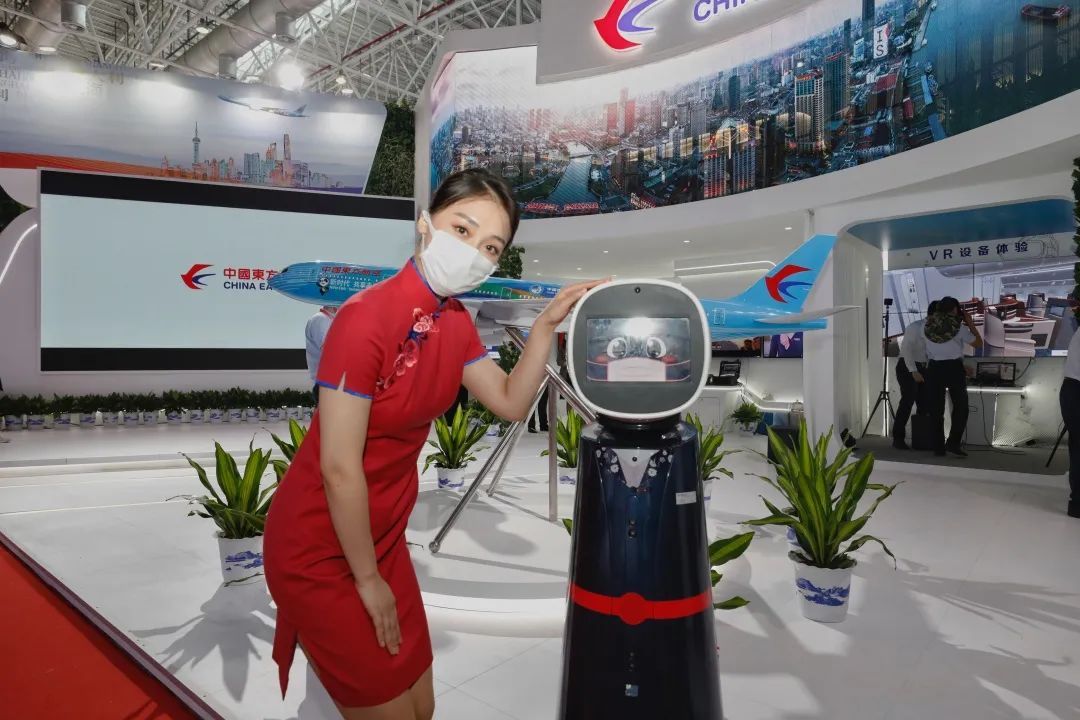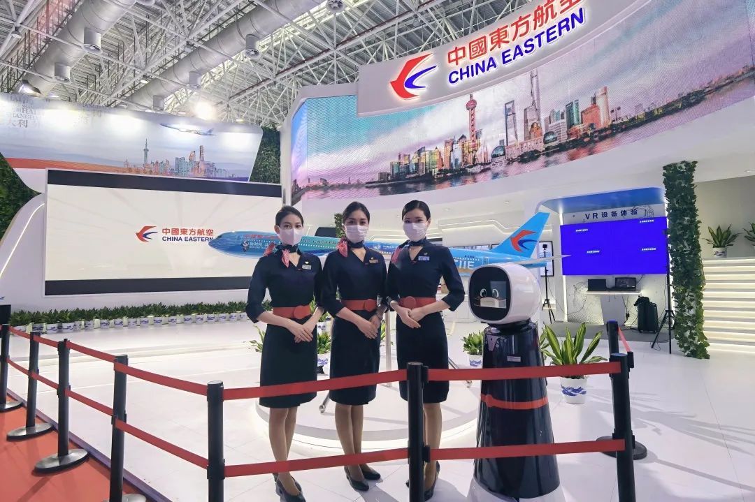 在28日开幕式当天,由8名东航客舱空乘表演的特色开幕舞蹈吸引了许多观众的目光,她们将和东航智能机器人“东东”一起,在为期6天的航展期间,为专业人士和普通观众提供现场指示引导和讲解服务。