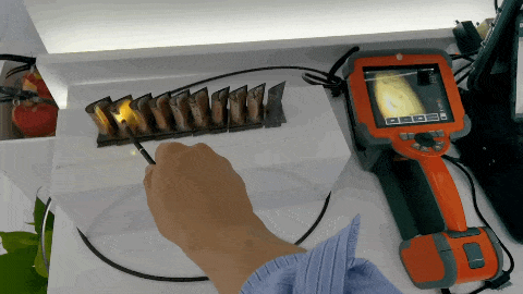 而区别于传统的“孔探检测”,东航此次在珠海航展展出的“智能辅助孔探”采用了人工智能图像识别技术,检测期间人工智能算法将同步对孔探视频进行识别判断,并给予维修人员提示,有效减少传统的“人工孔探检测”可能存在的疏漏。在此次珠海航展上,观众能够亲身体验“孔探”过程,在有10片真实发动机叶片的模型中,寻找细微之处的疑似“损伤”,给发动机做一次“胃镜”手术。