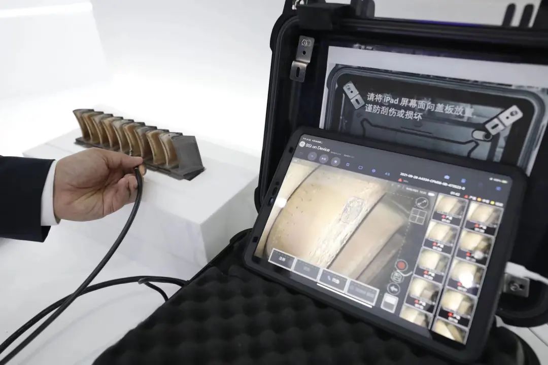 另一项是东航与GE公司合作的“发动机智能辅助孔探”技术。所谓“孔探”是指在飞机发动机例行检查过程中,维修机务将连接线缆的“孔探摄像头”深入发动机内部,在不拆解发动机的情况下,通过智能设备屏幕上的视频观测发动机内部零件、完成检测。