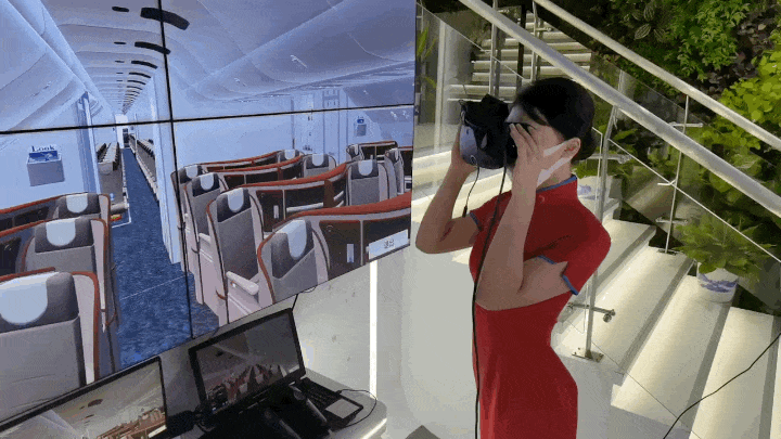 东航“VR模拟客舱”即是其中一项——借助VR虚拟现实技术,东航在展区内构建了目前投运的15种单双通道客机客舱的VR场景。观众佩戴头戴式设备和操控手柄后,就仿佛置身真实的东航客舱之中,可以像旅客一样走过飞机客舱走廊,亦可以“打开行李箱、放下小桌板、坐上航空座椅”,享受虚拟乘机的乐趣,在陆地上“零距离”体验东航真实的客舱环境。