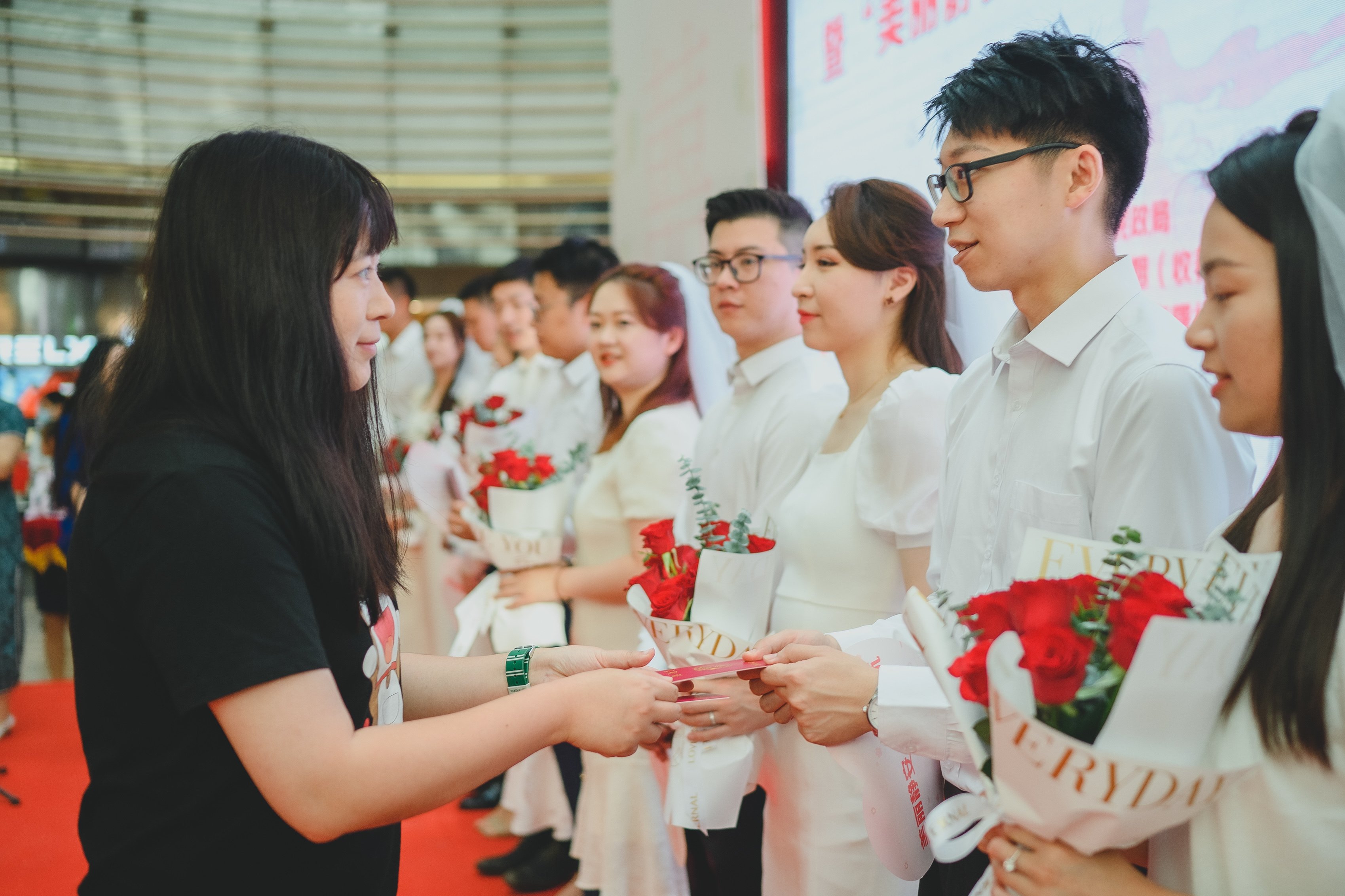 当天活动现场,区特邀颁证师代表阚晓君寄语新人在未来的家庭生活中要携手共进,相濡以沫,厚植爱国爱党爱家的家国情怀,传承优良家风、谱写优秀家训。静安区书法家协会会长杨继光在现场题字“家风胜万金 旧训绽新颜”以表达对新人们的美好祝愿。10对新人在现场嘉宾和亲友们的见证下,共同宣读了结婚誓言,特邀颁证师为新人们现场颁证,祝福他们白头偕老、婚姻幸福。