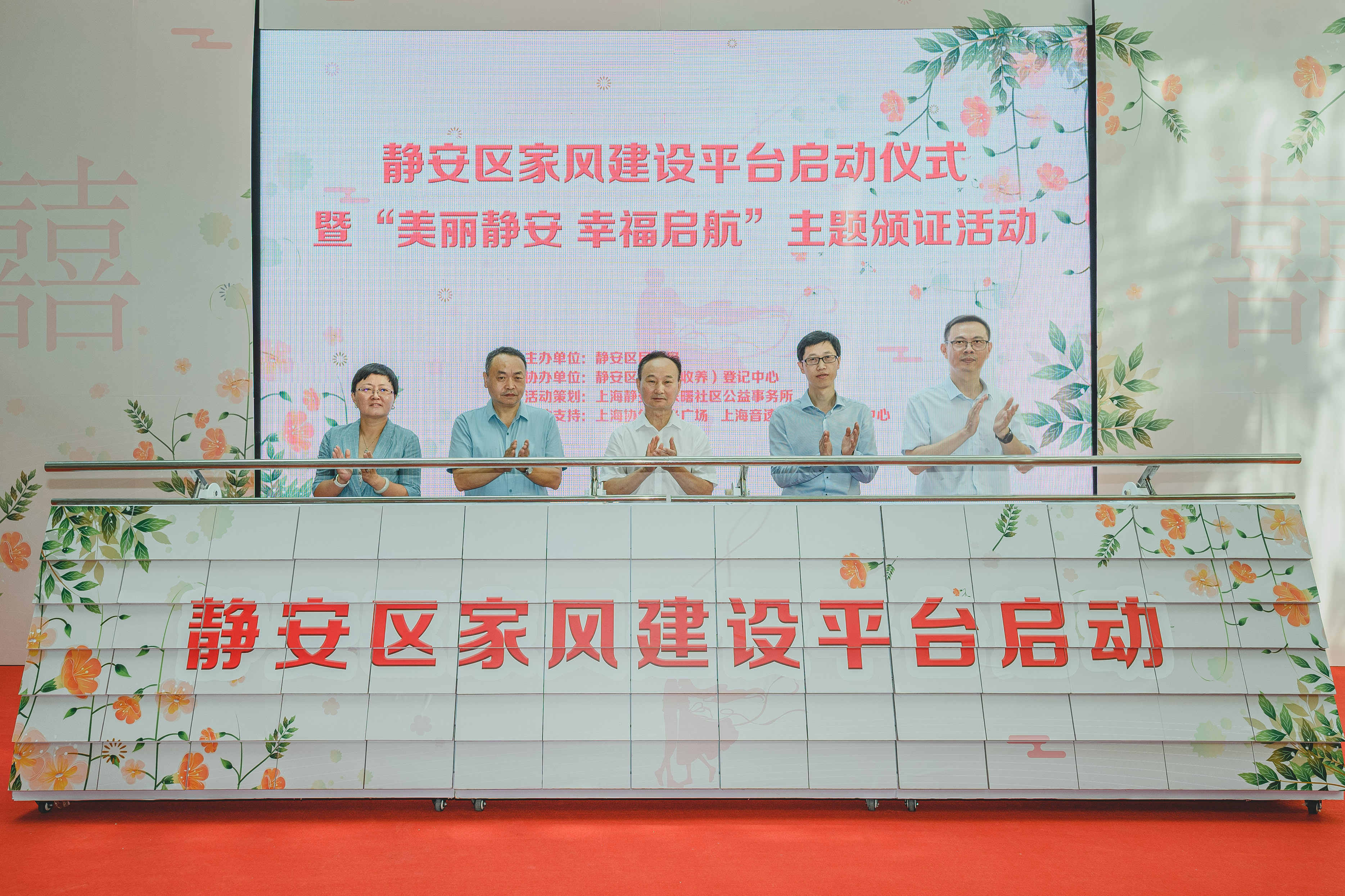 10月1日,静安区家风建设平台启动仪式暨十一国庆主题颁证活动在上海协信星光广场举行,市民政局、区民政局区以及区退役军人事务局、区妇联、区大宁路街道等有关单位负责人出席。