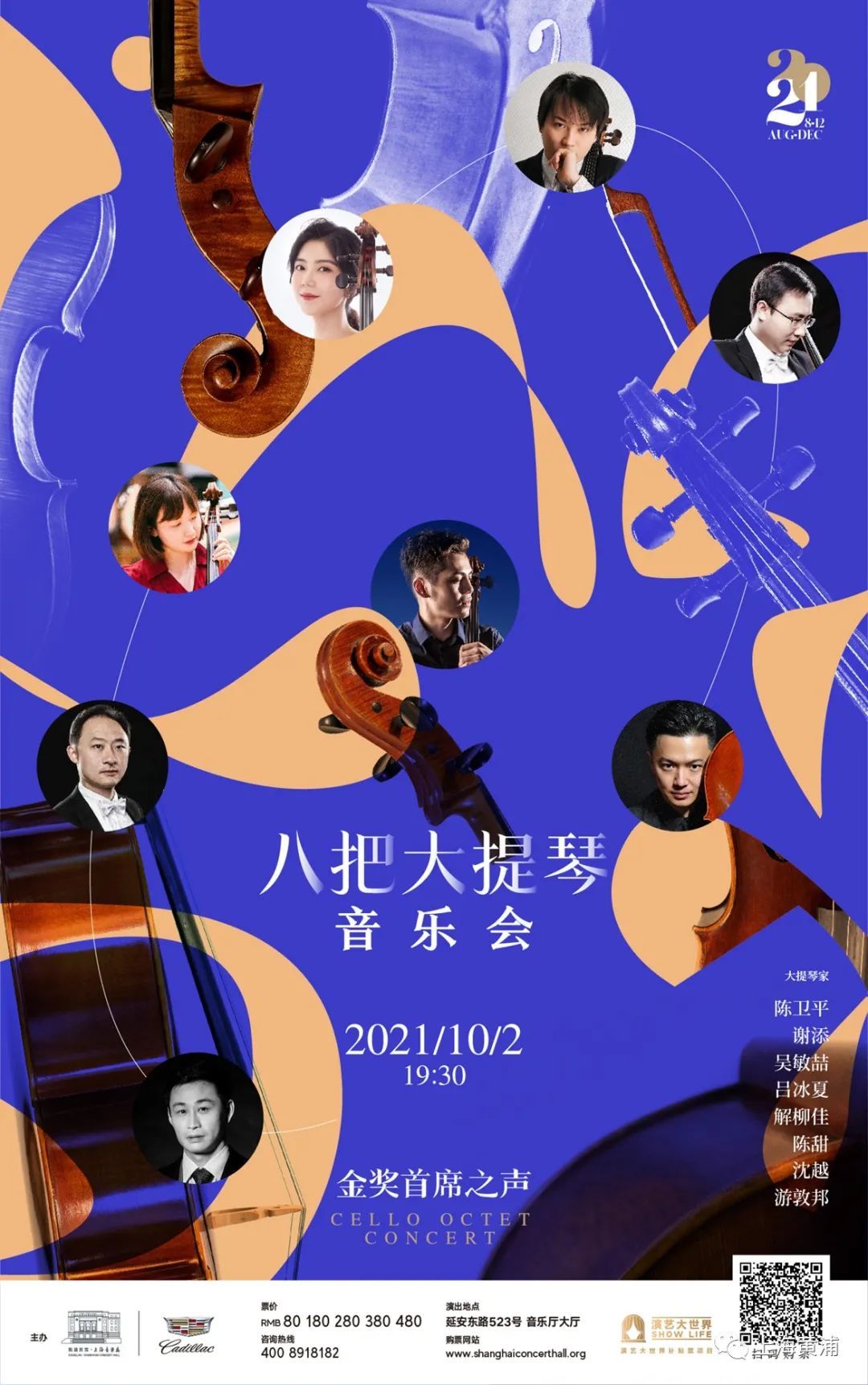 10月2日,大提琴演奏家陈卫平携手七位全国优秀大提琴家谢添、吴敏喆、吕冰夏、解柳佳、陈甜、沈越、游敦邦将登上上海音乐厅的舞台,为沪上观众奉献“金奖首席之声——八把大提琴音乐会”。此次演出将维瓦尔第《四季》小提琴协奏曲改编成八把大提琴重奏版本,原本的小提琴炫技移植到大提琴后,不仅演奏技术难度大幅度提升,更是上海首演。
