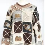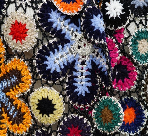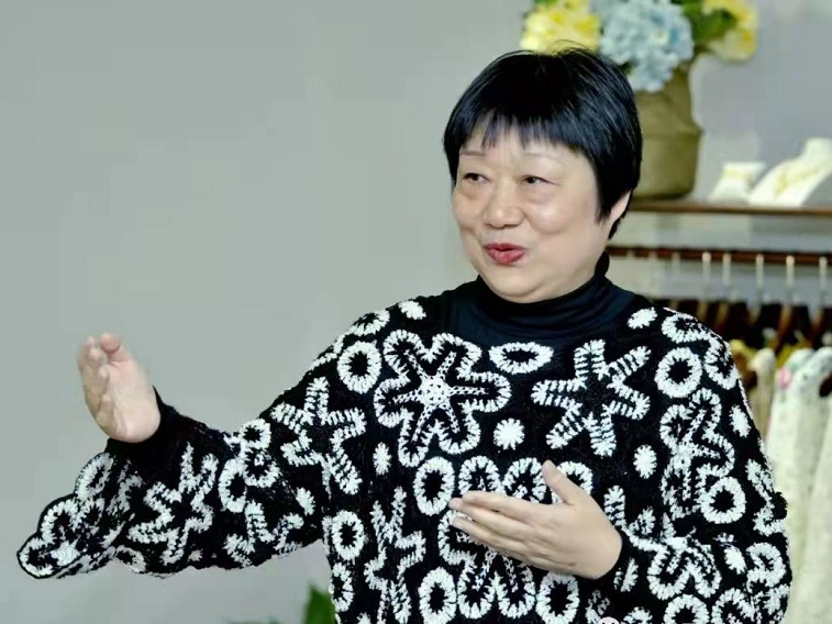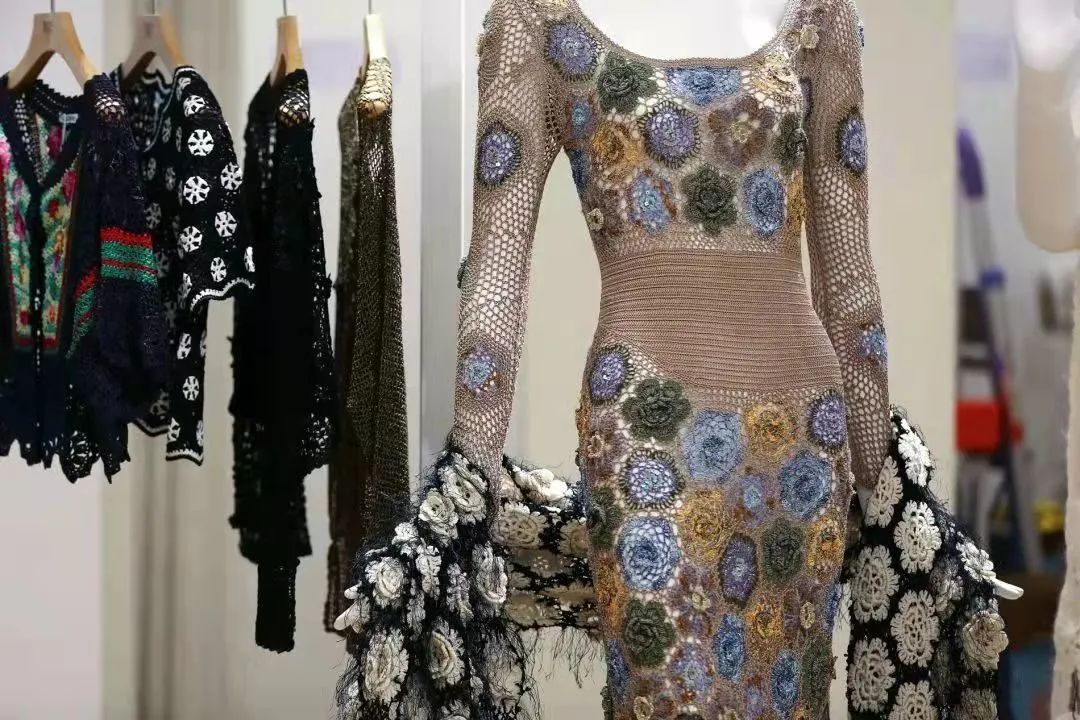 海派绒线编结技艺代表性传承人李黎明老师,通过对旧毛衣的“升级再造”,巧用钩针、棒针等针法,在材料、色彩、造型、款式、工艺、绣饰等方面下功夫,应用不规则的排列、多色彩的组合、立体贴花、精致绣缀、自由流动图案等技法,将普通的手工编织技艺不断推陈出新,更加现代时尚。