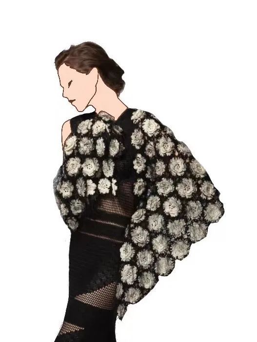 左图为复刻的黄培英编结作品《缕金衣》,采用龙飞凤舞针法,彰显海派绒线编结特色及黄培英镂空毛衣编结的独特技法。