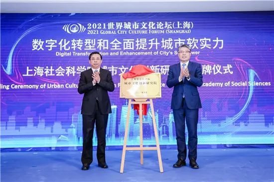 论坛上,上海社会科学院城市文化创新研究院揭牌,首批特聘研究员名单公布,同时还举行了上海社会科学院文学研究所学术研究文丛、城市文化创新研究院智库文丛首发暨赠书仪式,包括《海派文化新论》《城市软实力研究》《海外汉学中的上海文学研究》等一批城市文化研究的最新成果。