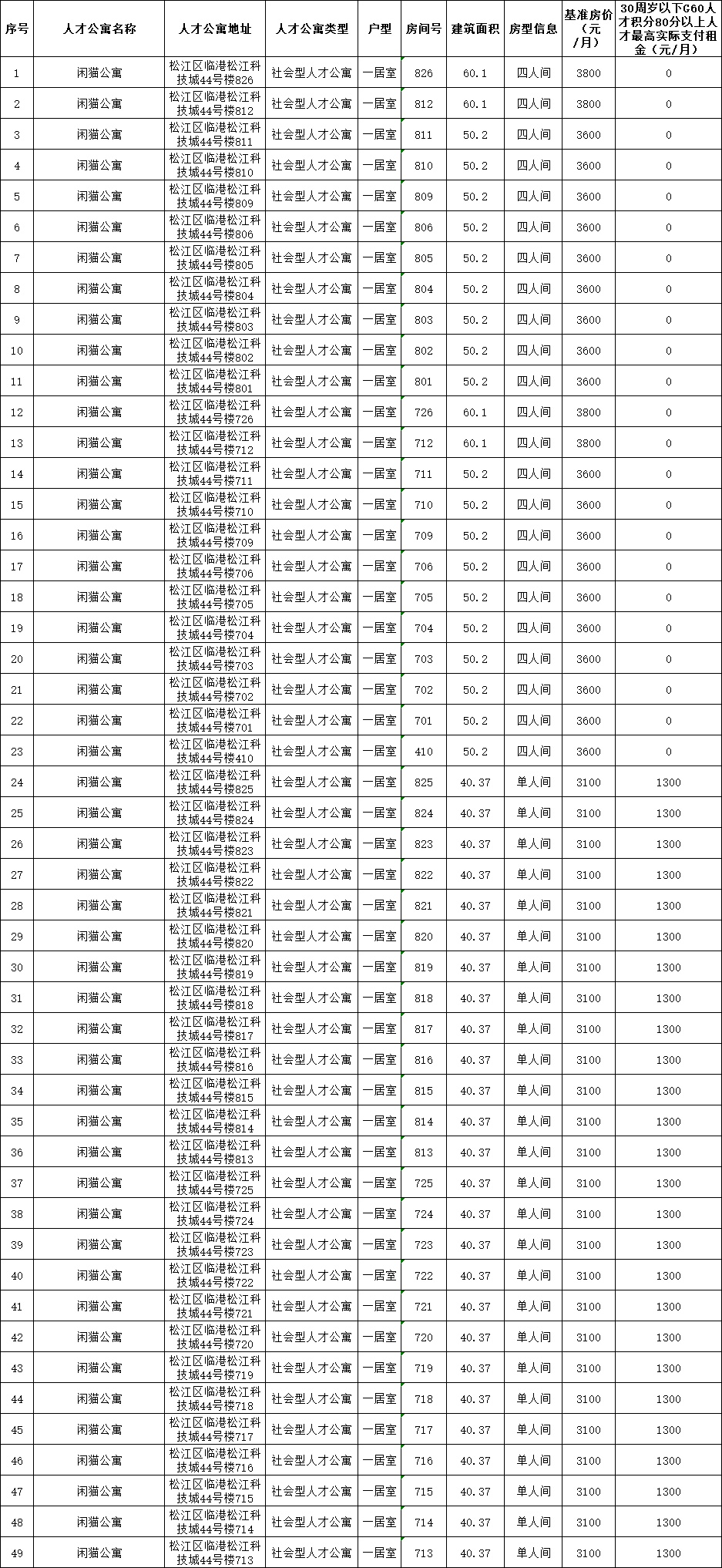 松江区人才服务中心人才公寓咨询热线